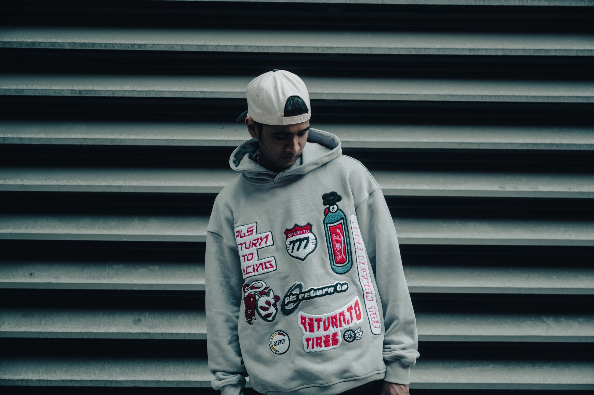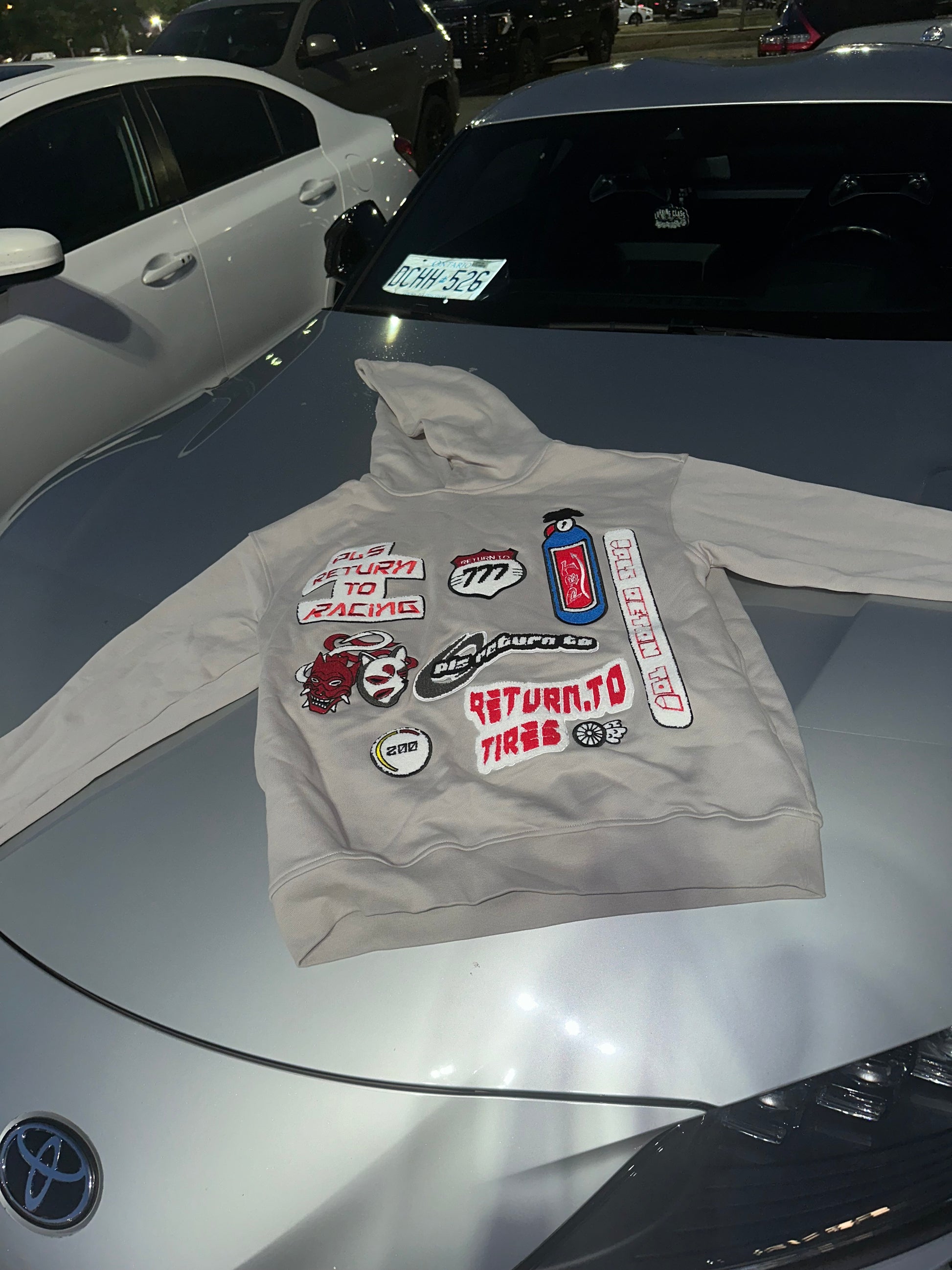 Oversized heavyweight chenille patchwork embroidery. Made for the cold late night drives